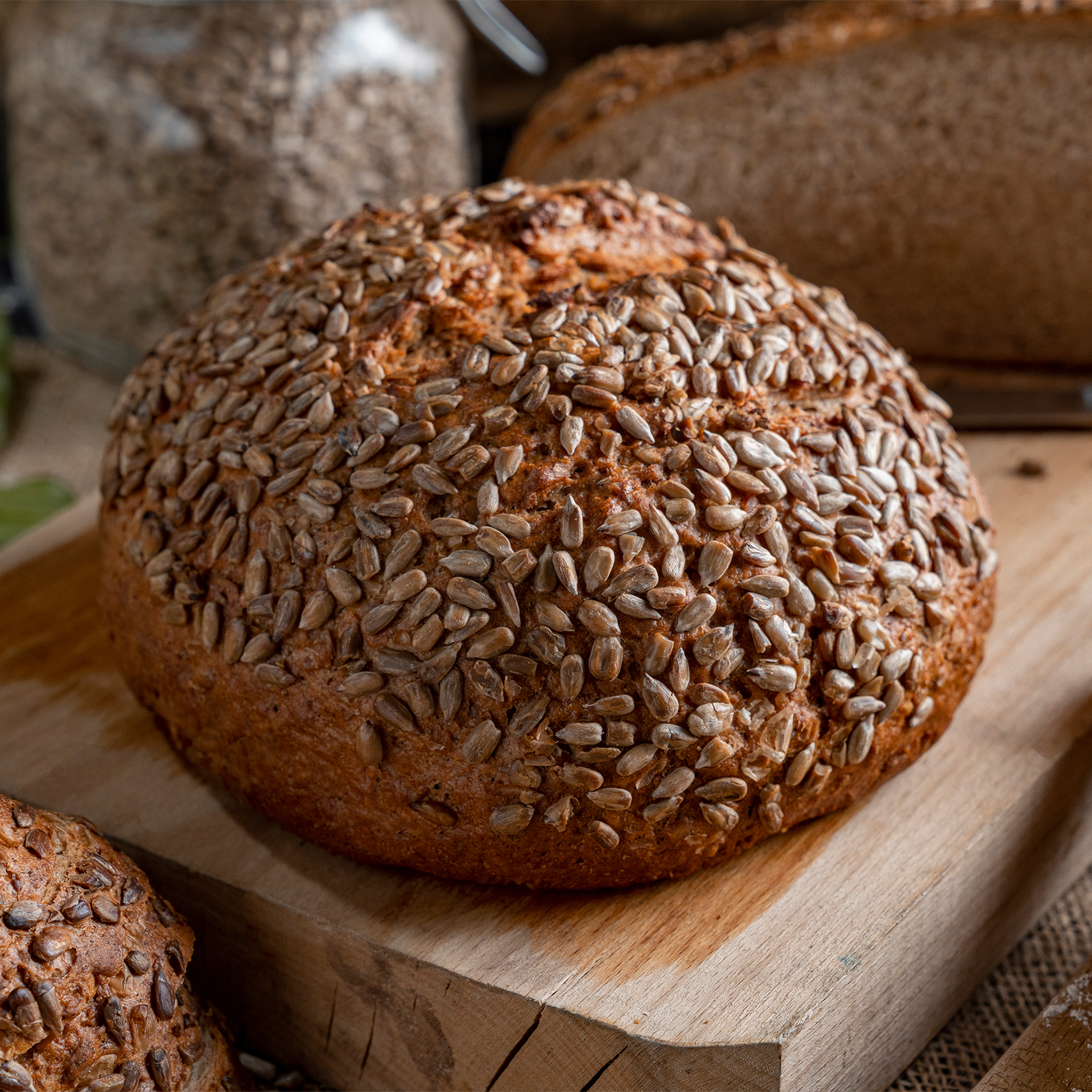 Sonnenblumenkernbrot is a traditional German-style sourdough bread made with a mix of whole wheat, rye, and all-purpose flours. Its rich, earthy flavor and soft, springy texture are enhanced by roasted sunflower seeds scattered generously throughout. Naturally fermented for better digestibility, it’s perfect for sandwiches, breakfast spreads, or simply enjoyed on its own.